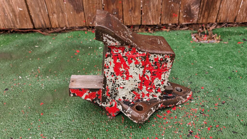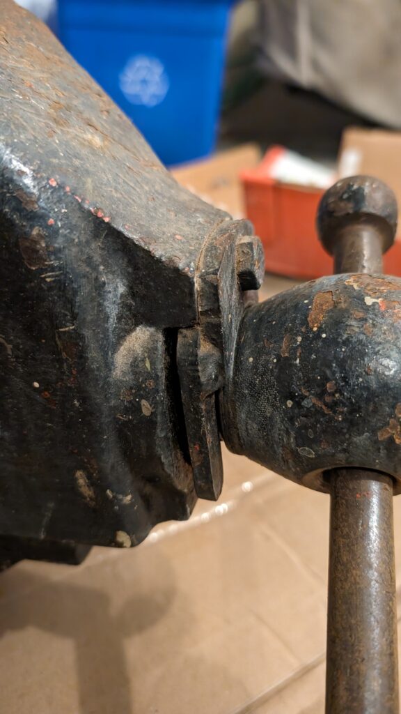 When I said this vise was well-loved, I wasn’t kidding. This No 59 has been through it over it’s near-century of life: the famous Parker collar had gone missing and been replaced with a makeshift one, the rear slide was cracked – a common issue on the early semi-steel reinforced slides, and I might have counted at least 4 layers of paint on it. Despite all this, however, the jaws opened and closed with no issues, and the vise felt solid.