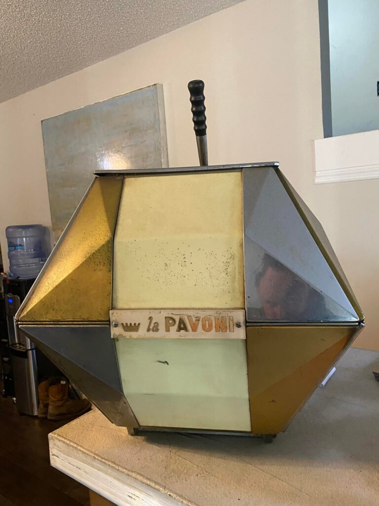 At some point in the 1970’s Ron acquired the Concorso from the former Pavoni distributor for his coffee shop, and operated it for some years. He knew it was special from the moment he purchased it. At some point, parts and knowledge to repair the machine became difficult to the point where he could no longer use it and had to use a different, more modern machine. This is when the machine became a display piece.
